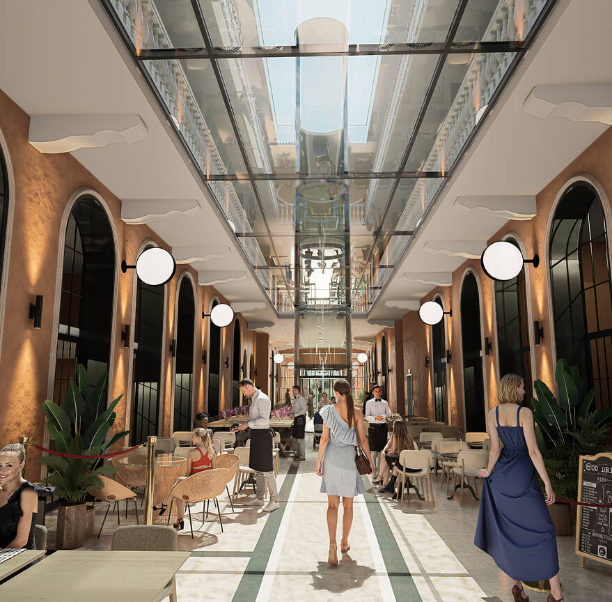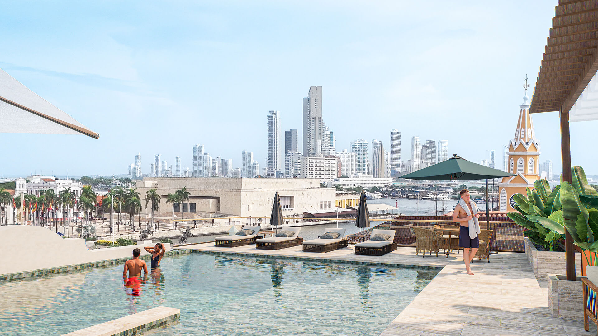 Pasaje Dager tendrá para ofrecerte todo un primer piso de zona gastronómica y comercial con 13 locales, 3 islas y en los pisos 2 y 3, 36 apartamentos desde 30 m2. Y en el último piso un espectacular Rooftop con vista al centro Histórico en el que podrás disfrutar de los más bellos atardeceres de Cartagena de Indias.